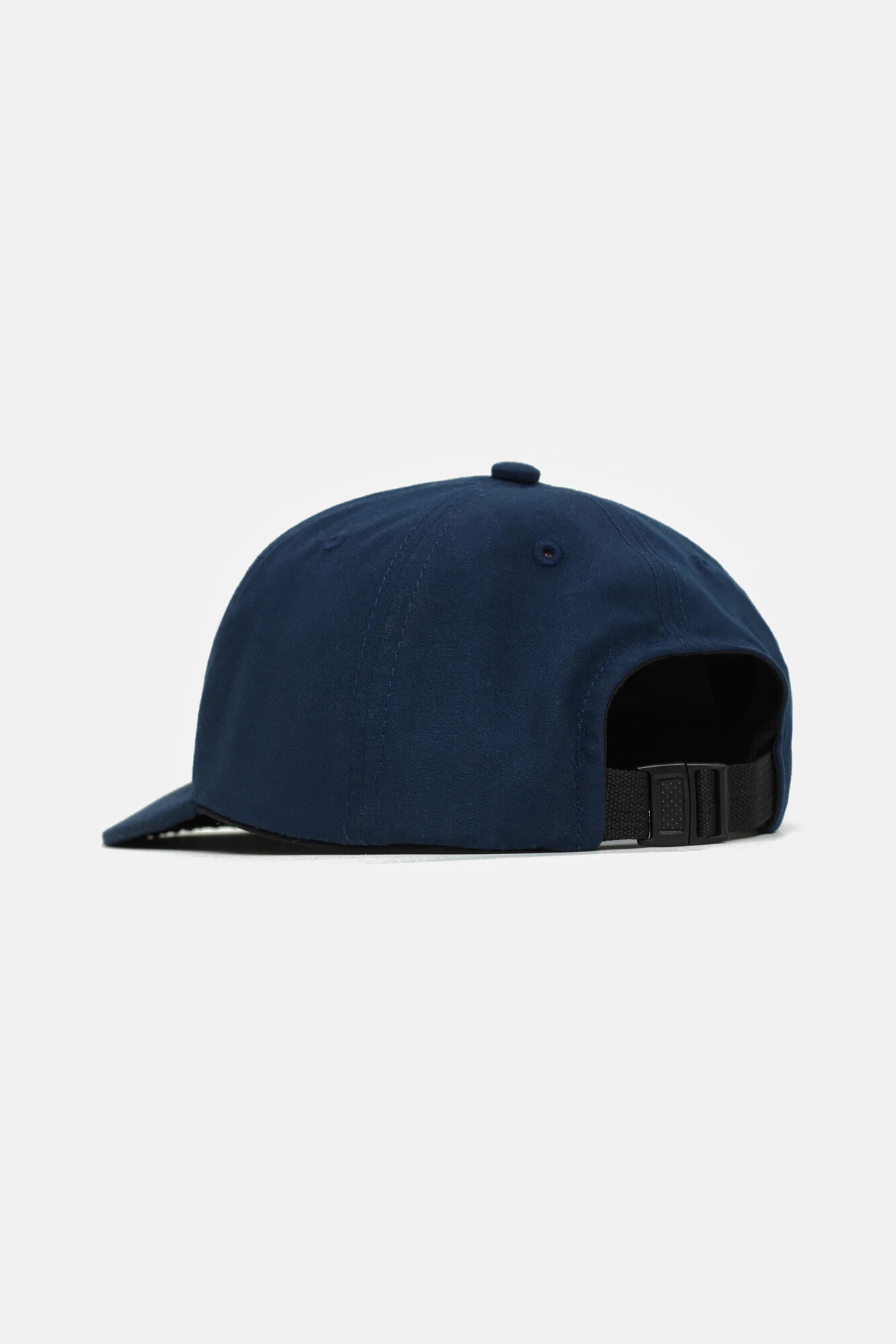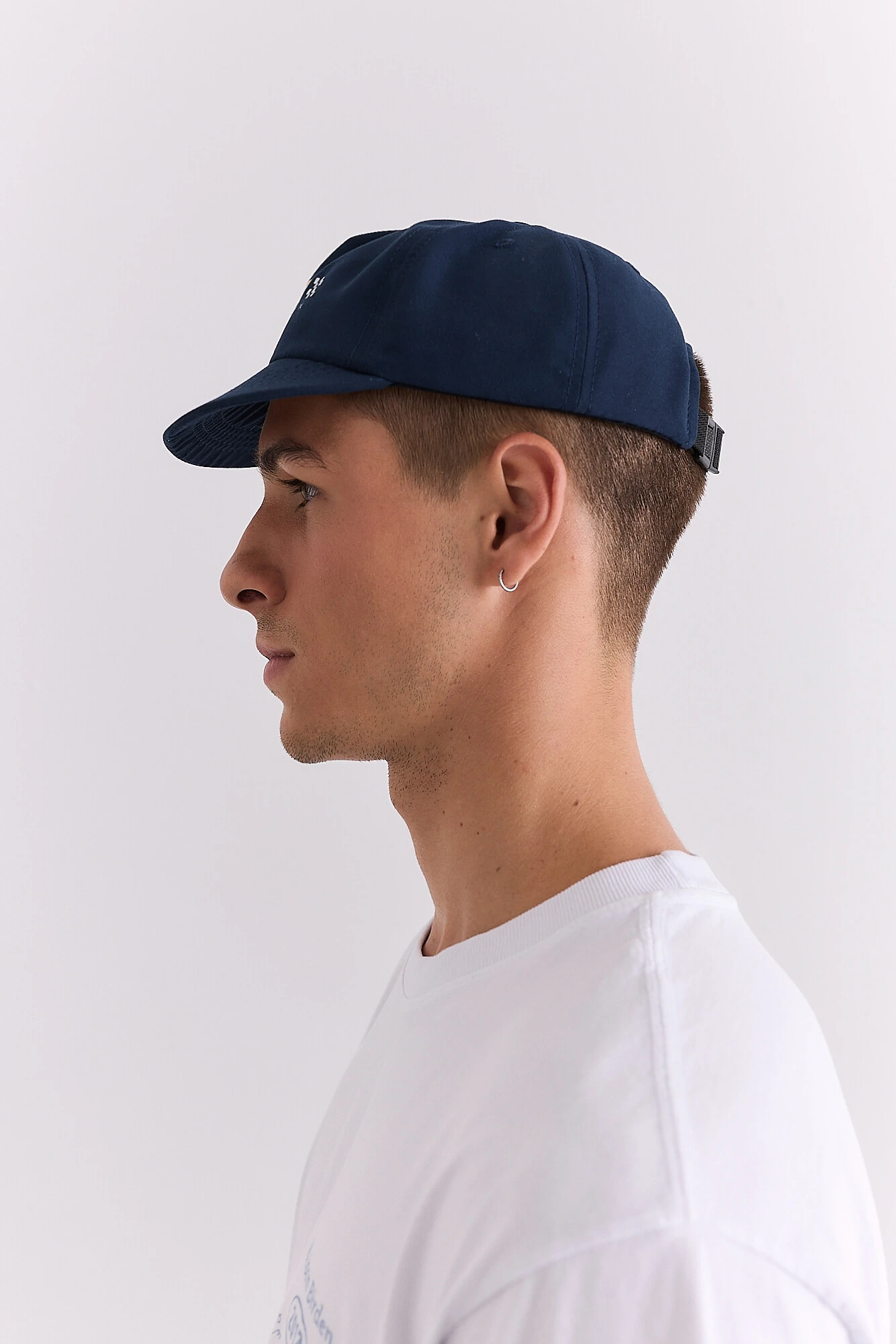 Boné feito em tecido 100% poliéster, modelagem desconstruída com aba flexível e mais curta que as convencionais.