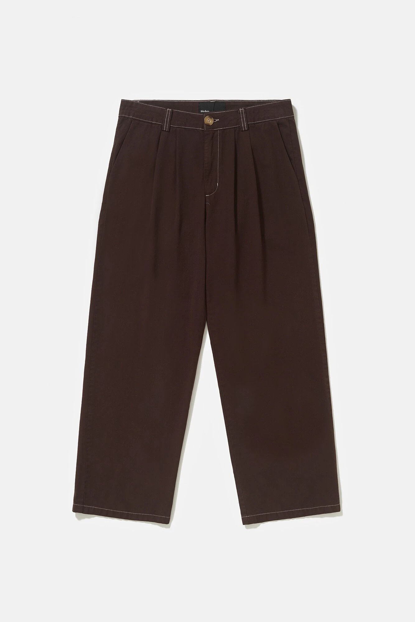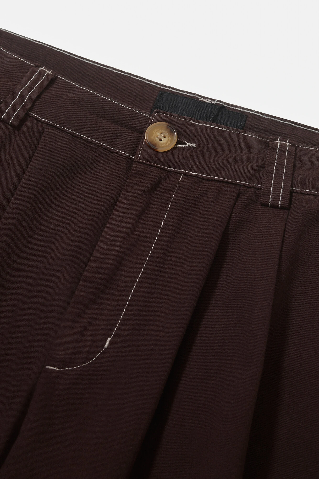 Calça estilo alfaiataria em sarja 100% algodão com corte reto, cintura levemente ajustada e prega dupla para maior sofisticação e elegância.