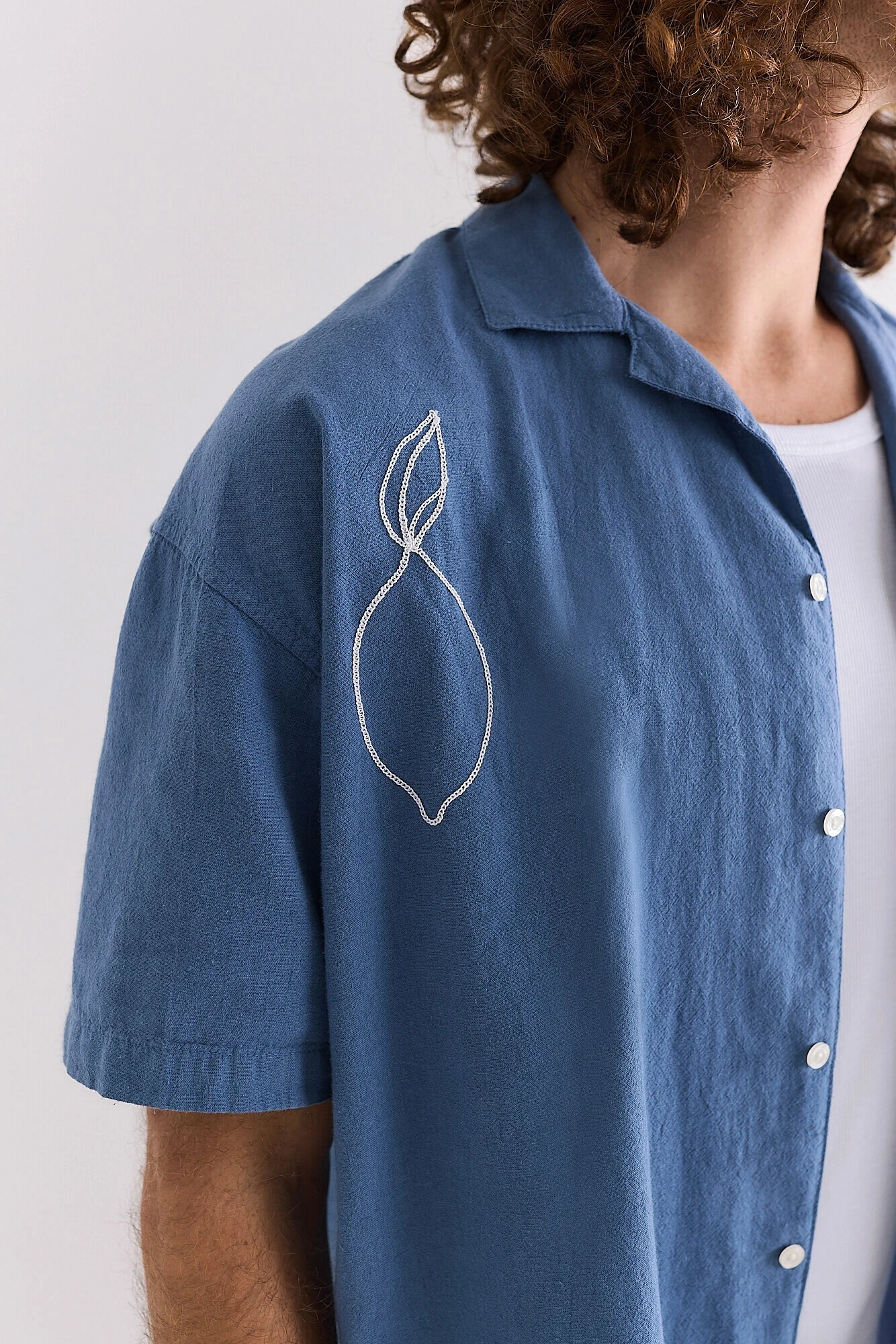 Camisa de manga curta com gola cubana e modelagem boxy, levemente mais curta no comprimento. Confeccionada em uma mistura clássica de linho e algodão, que une a textura natural do linho ao toque macio e respirável do algodão.