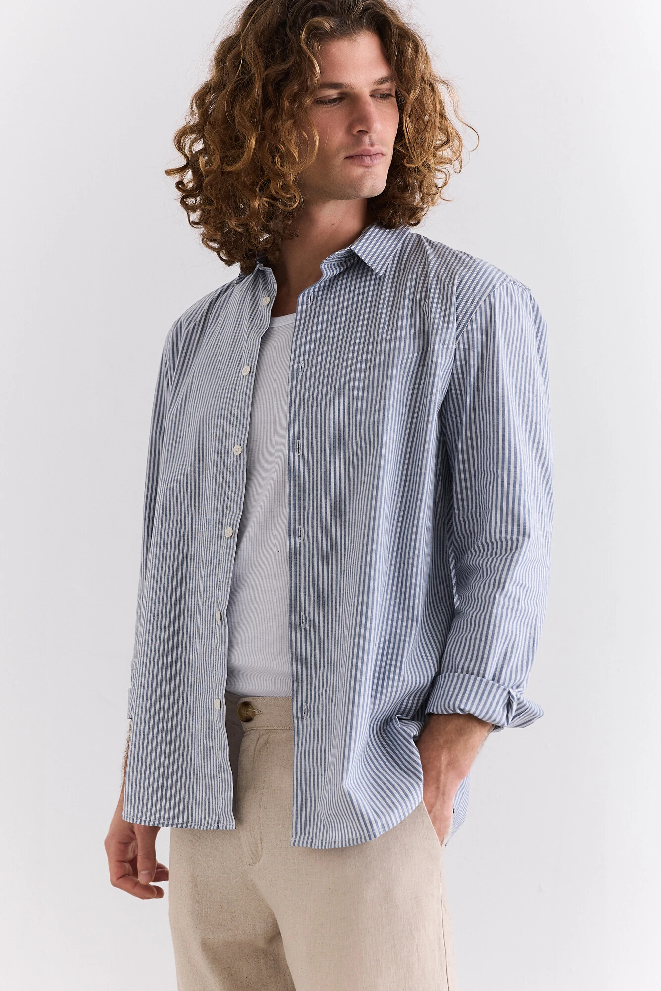 As listras clássicas trazem um ar sofisticado, a modelagem é mais ampla que as camisas convencionais para garantir maior conforto, seja para o dia-a-dia ou para ocasiões especiais.