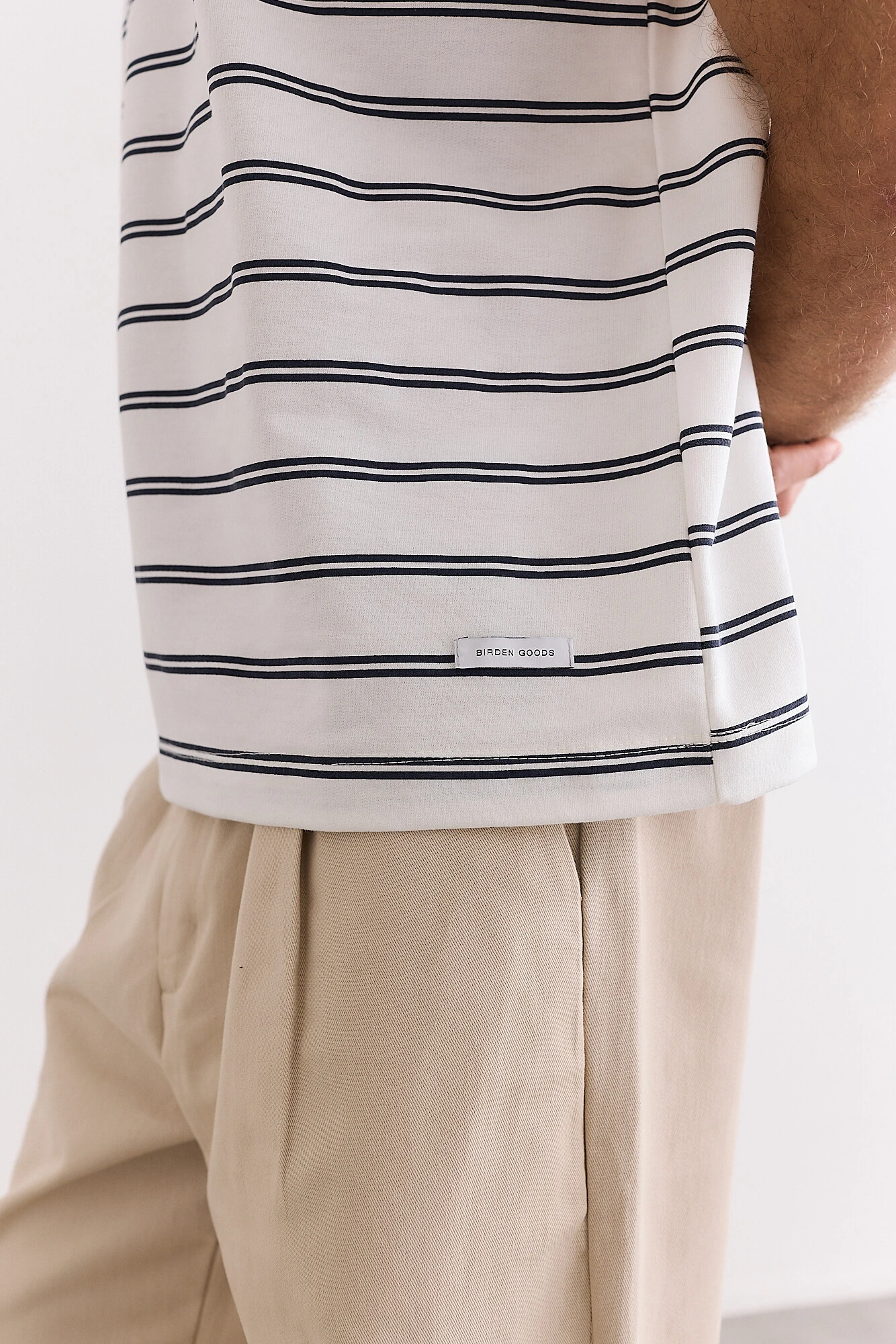 Nossa interpretação em uma leitura casual e contemporânea das clássicas "Breton Shirts", modelo de camiseta listrada francesa originalmente usada por marinheiros da Bretanha.