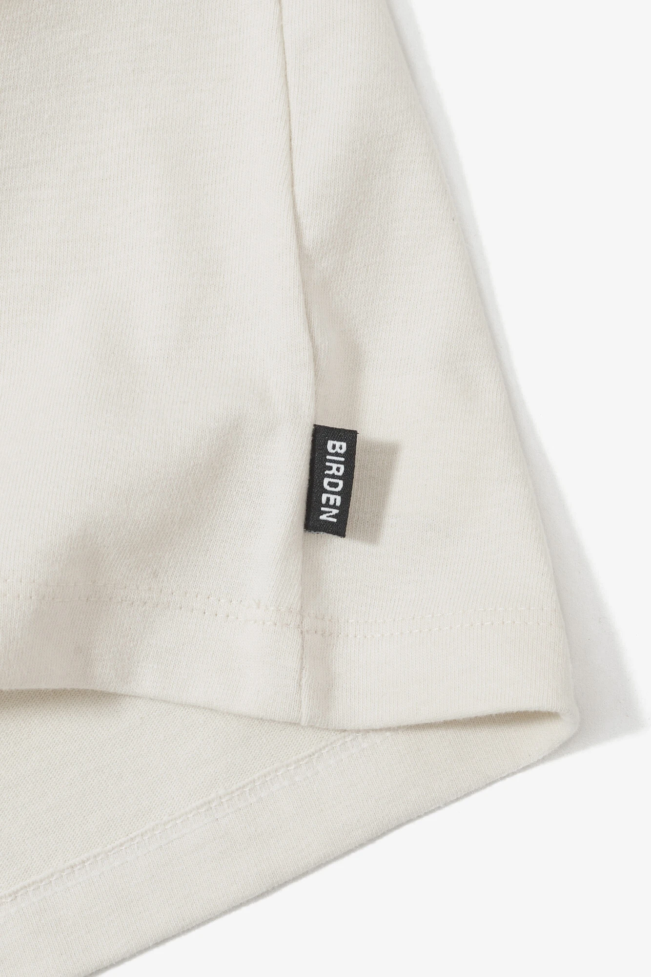 Camiseta premium pré-encolhida confeccionada em malha pesada (265GSM) 100% algodão. Possui modelagem regular sutilmente mais ampla que as convencionais. A peça apresenta etiqueta bordada Birden na lateral, gola de ribana canelada e reforços de duas agulhas nos ombros.