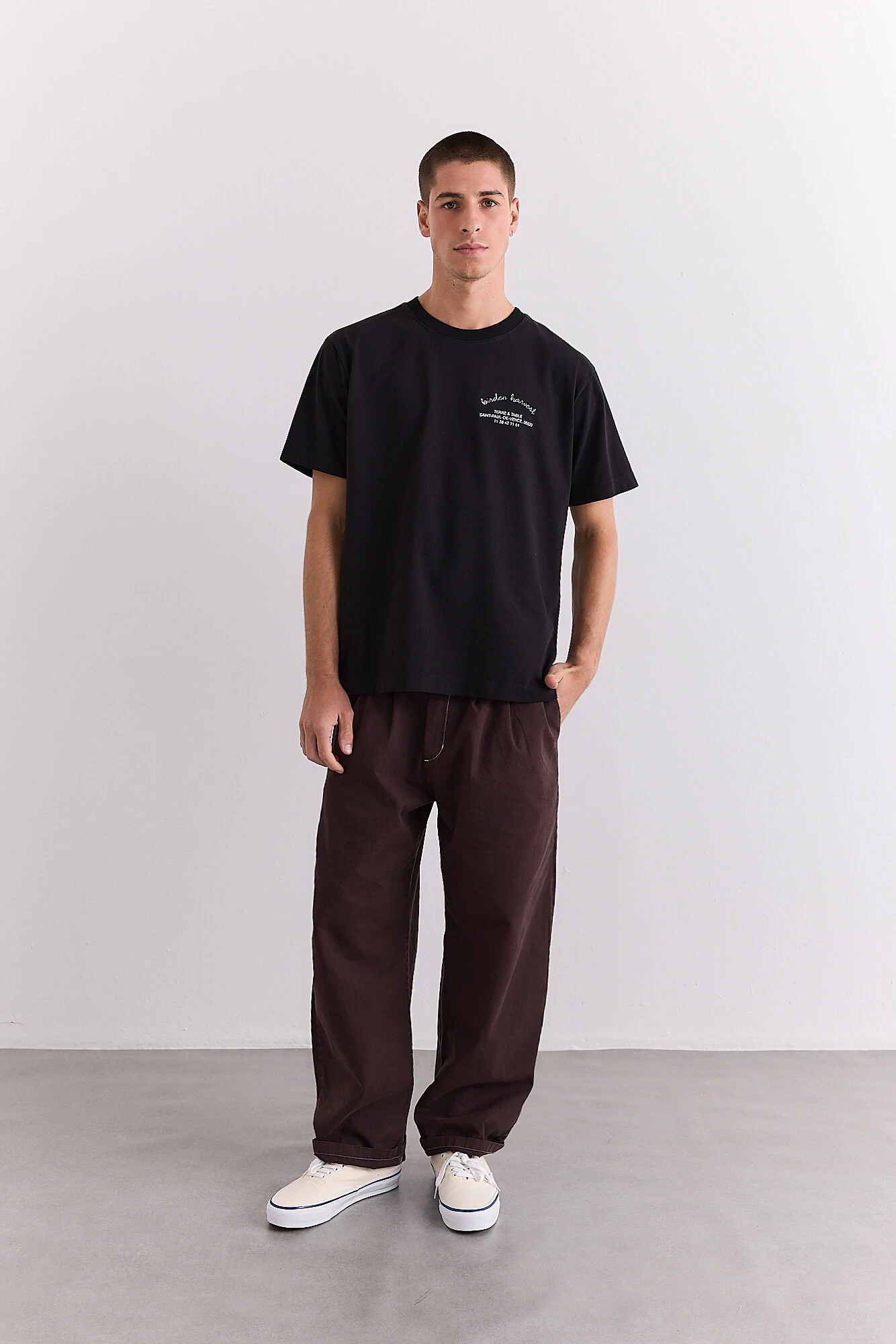 Camiseta pré-lavada e já pré-encolhida em processo artesanal de lavanderia, levemente perfumada.