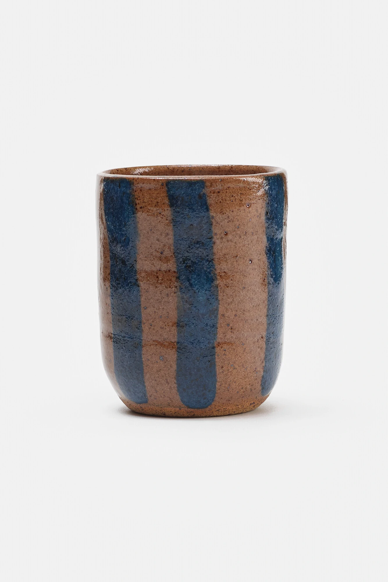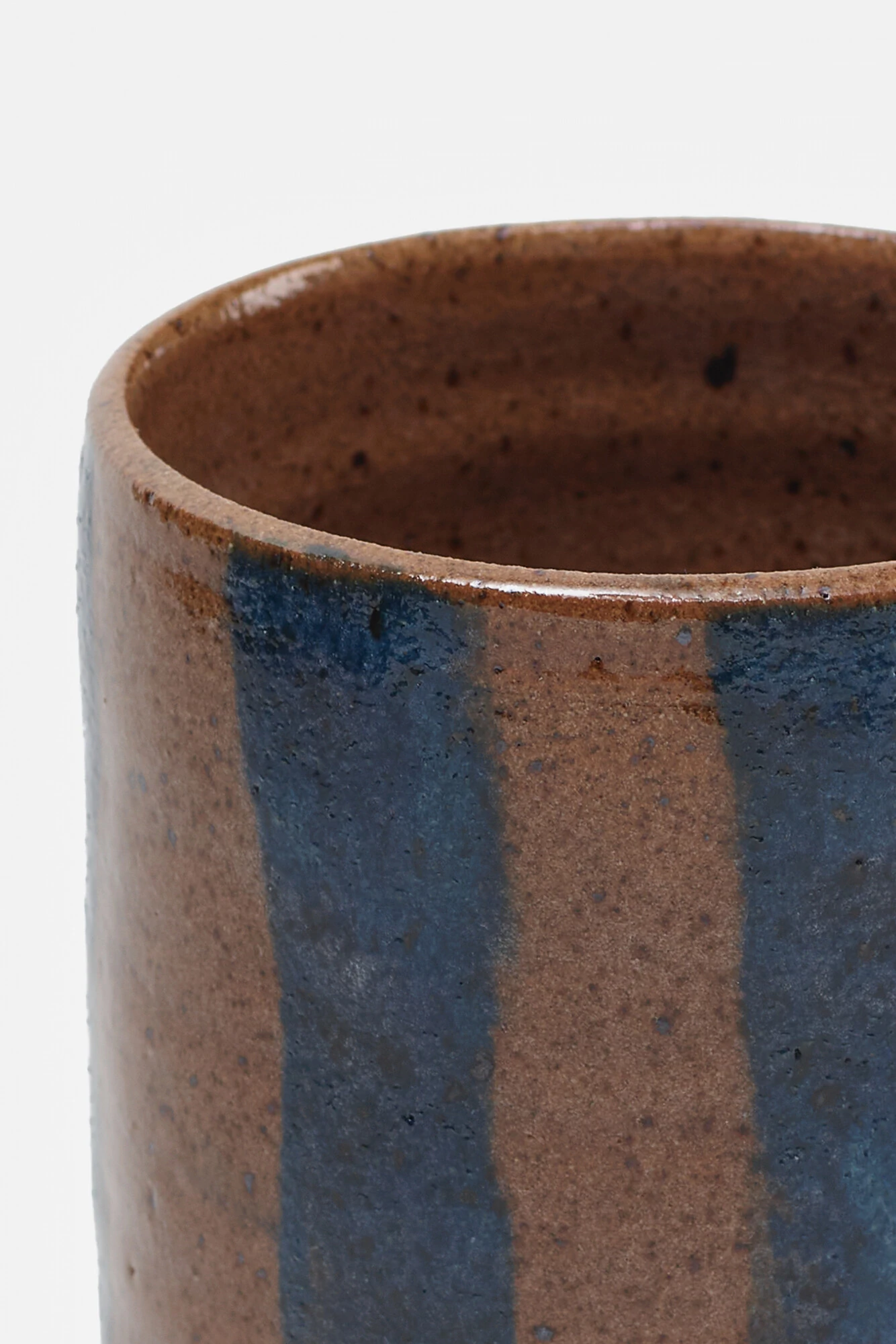 Copo de café com listras e corpo arredondado. Compacto e versátil para o dia a dia, um modelo clássico e rústico para um bom cafézinho pós-almoço.