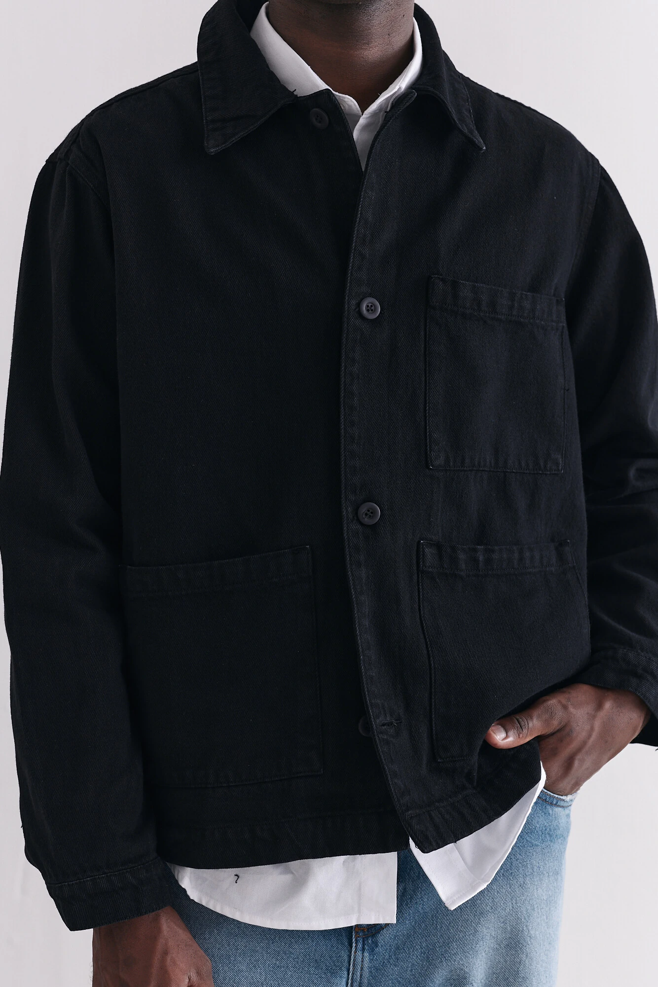A Jaqueta Worker shadow faz referência às clássicas jaquetas worker européias e é produzida em lona de algodão cru.