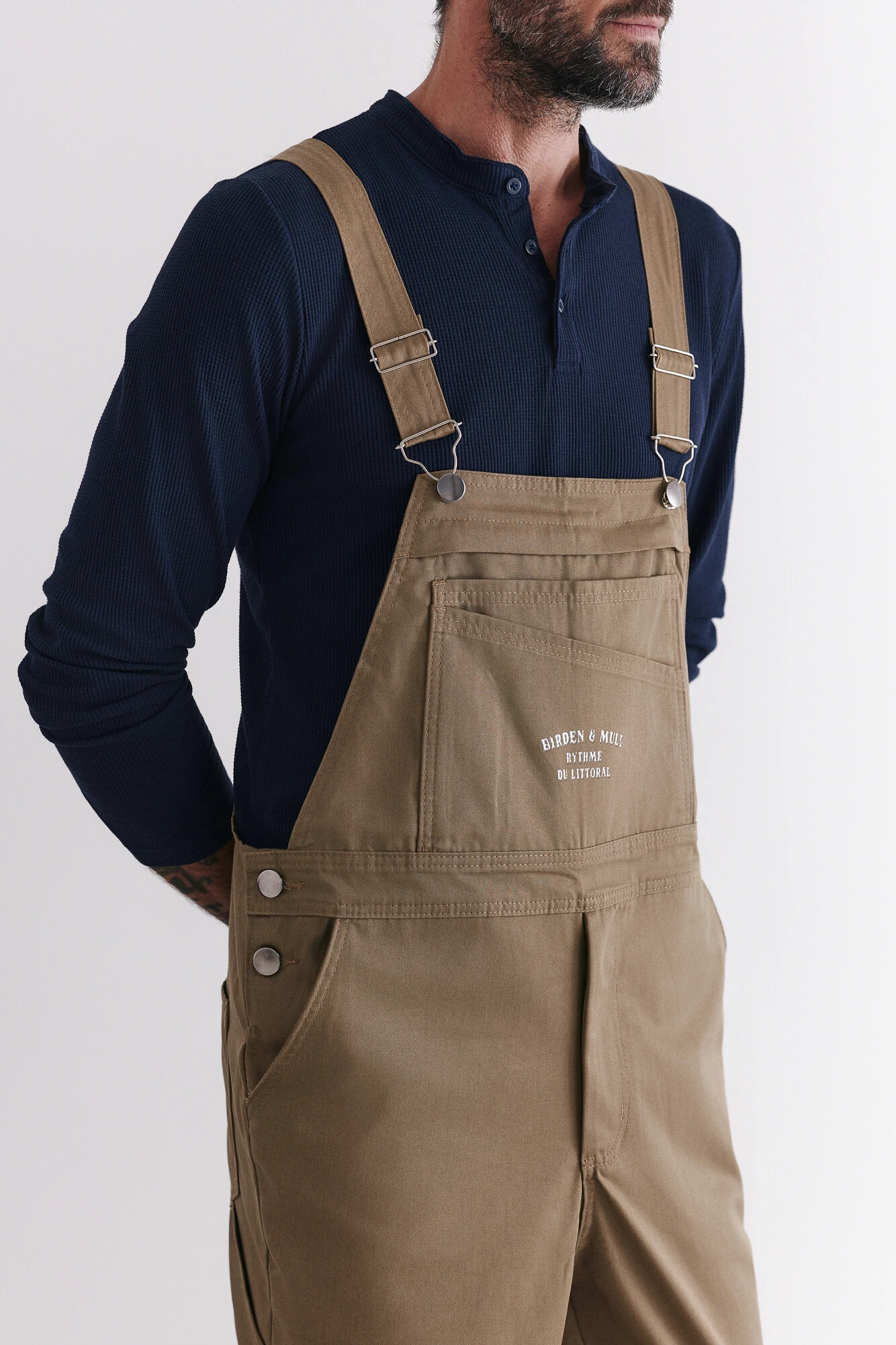 Jardineira feita em sarja leve para uso no dia a dia. Possui ajuste no ombro, além de botões nas laterais para melhor conforto.