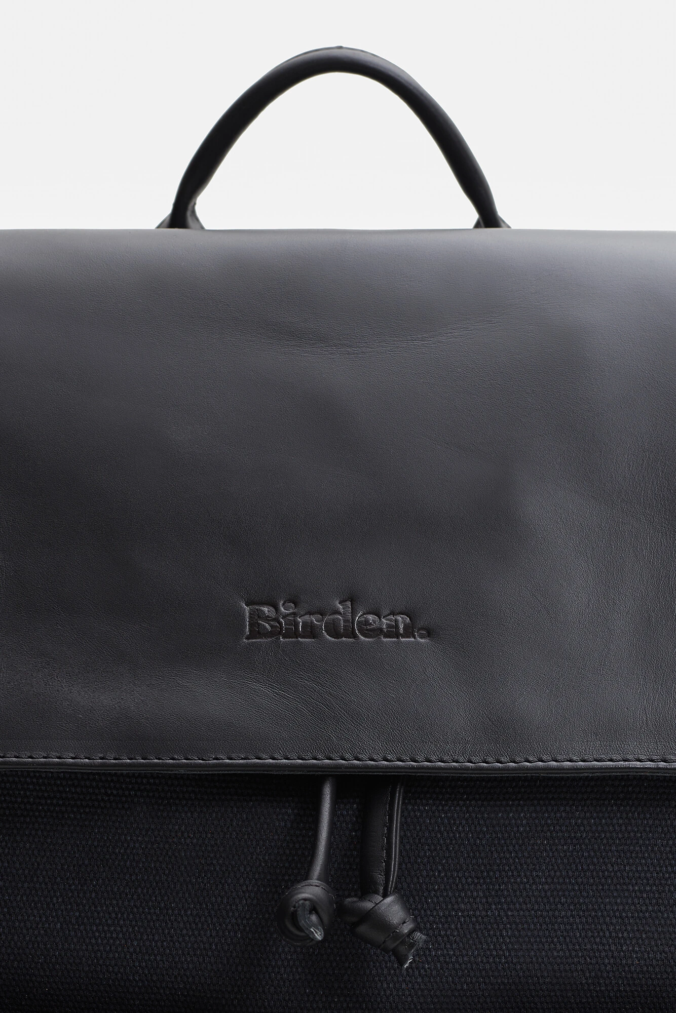 - Fechamento com aba em couro e cordão interno