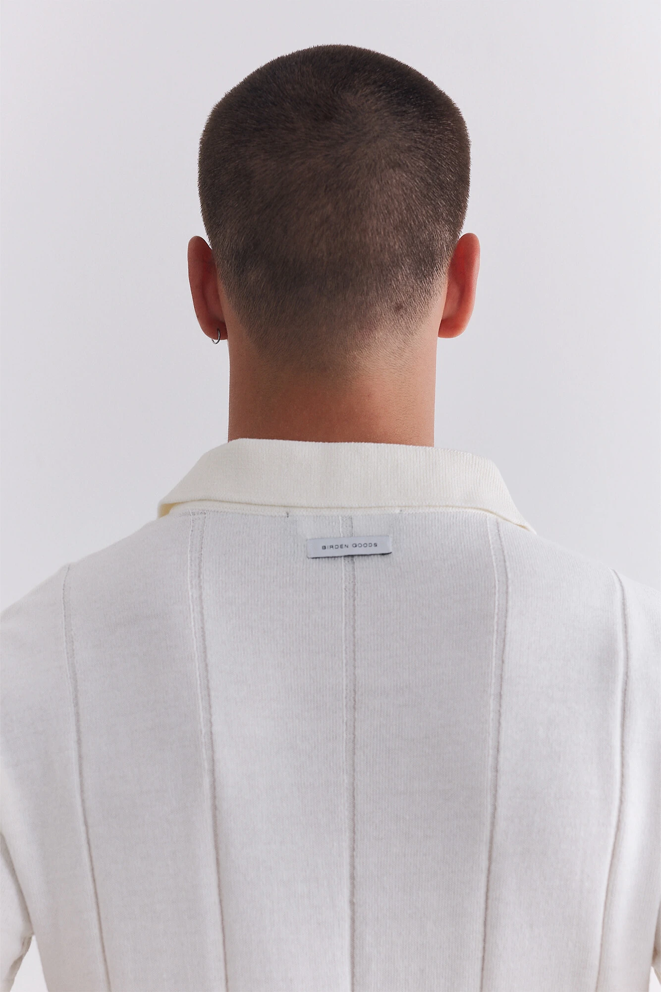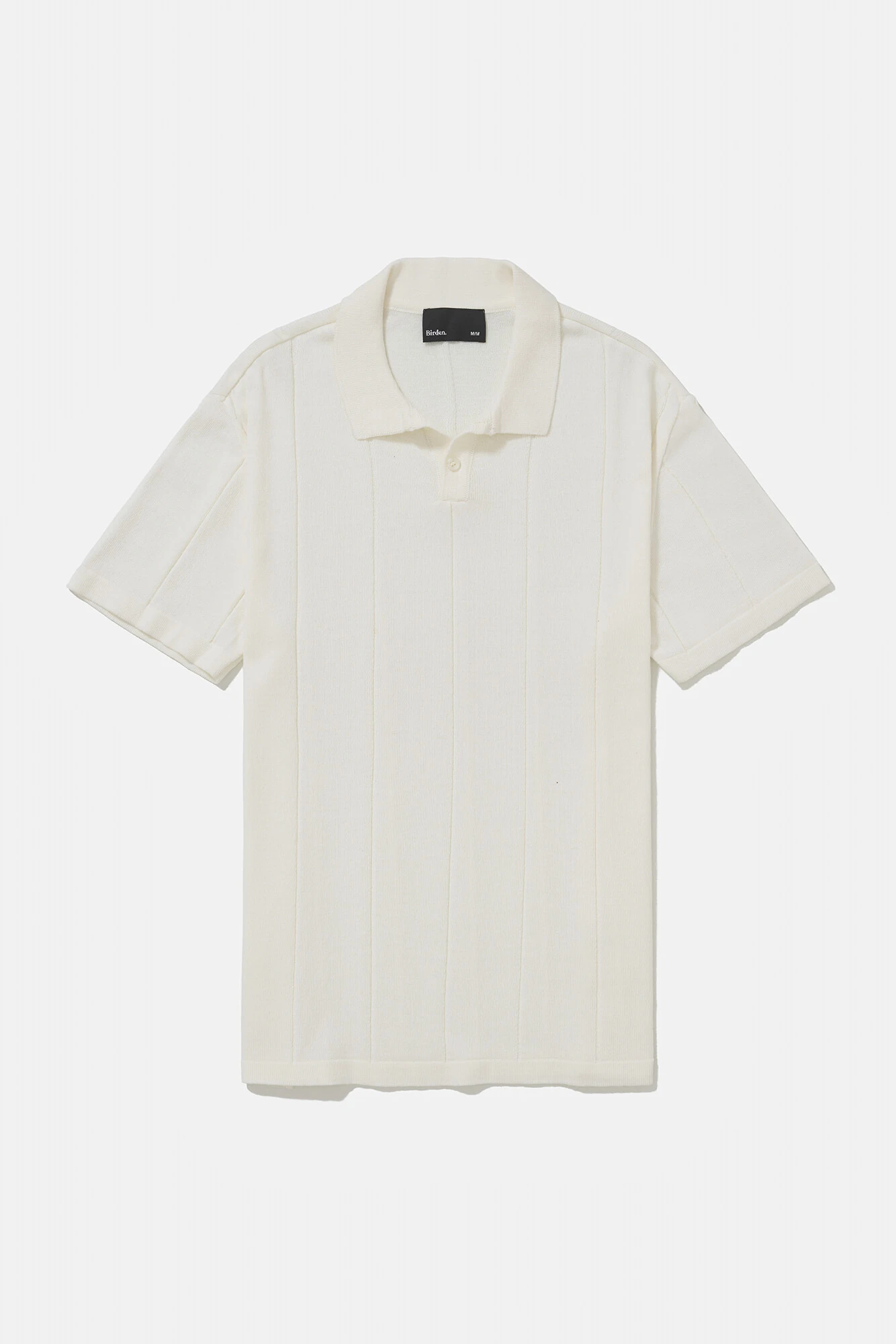 Polo leve em tricot com aspecto canelado mais largo, proporcionando toque macio, boa respirabilidade e aparência casual. Gola, punhos e barra canelados mais finos trazem um acabamento limpo e reforçam o visual refinado da peça.