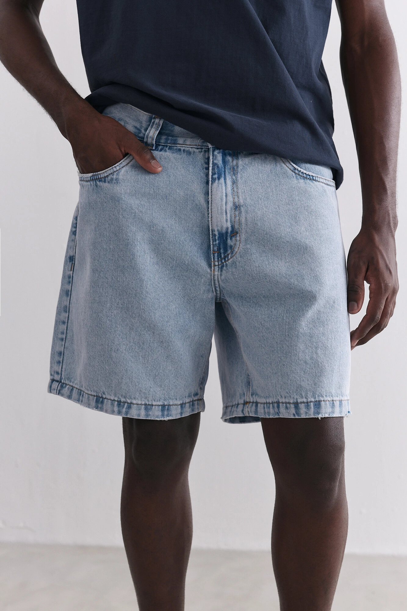 Como continuidade ao programa de Jeans Birden, apresentamos a Bermuda Jeans Wide, uma peça que traduz a nossa leitura contemporânea do denim clássico. Confeccionada em jeans 100% algodão, com construção encorpada e resistente, recebe lavagem estonada vintage e leves efeitos puídos que adicionam caráter sem excessos.